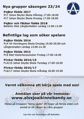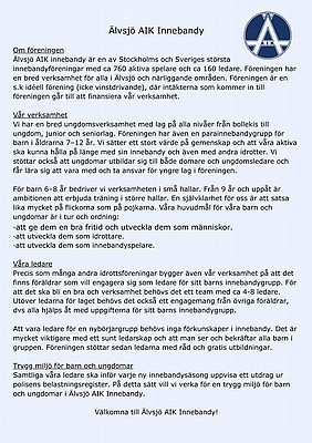 Har ni frågor? Maila innebandy@alvsjoaik.nu.